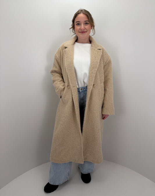 Cashmere Longsleeve Leoprint mit Kragen - beige