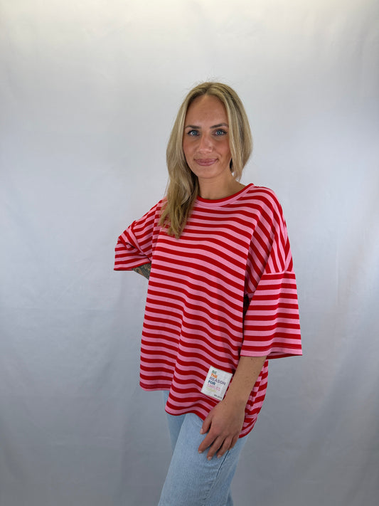Oversize T-Shirt Lolly gestreift - rot/rosa