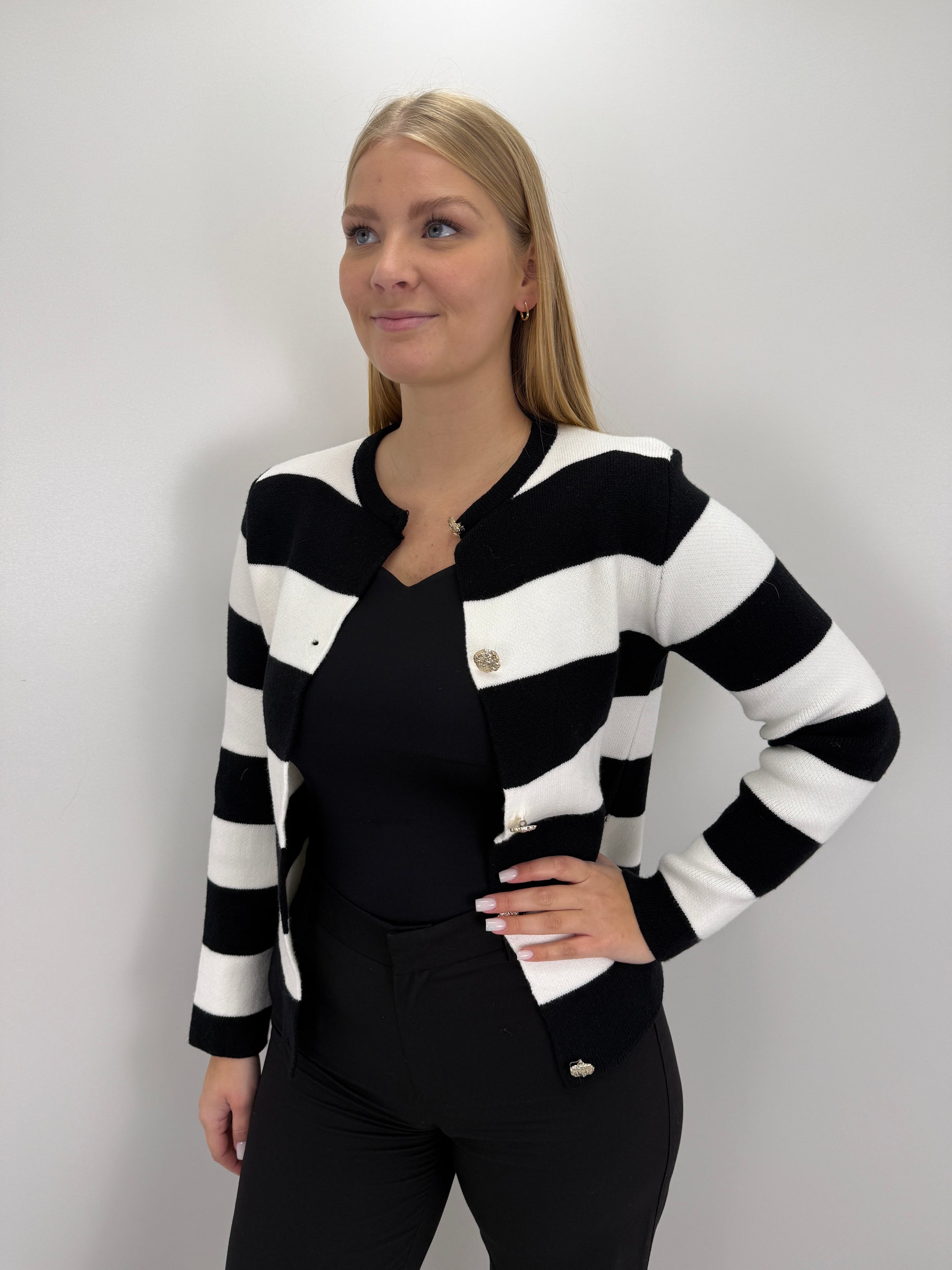gestreifter Cardigan mit edlen Knöpfen