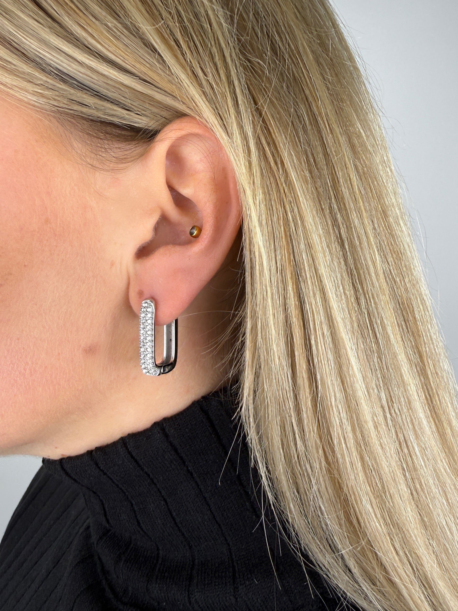 große silberne Ohrringe mit Steinen aus Zirkon