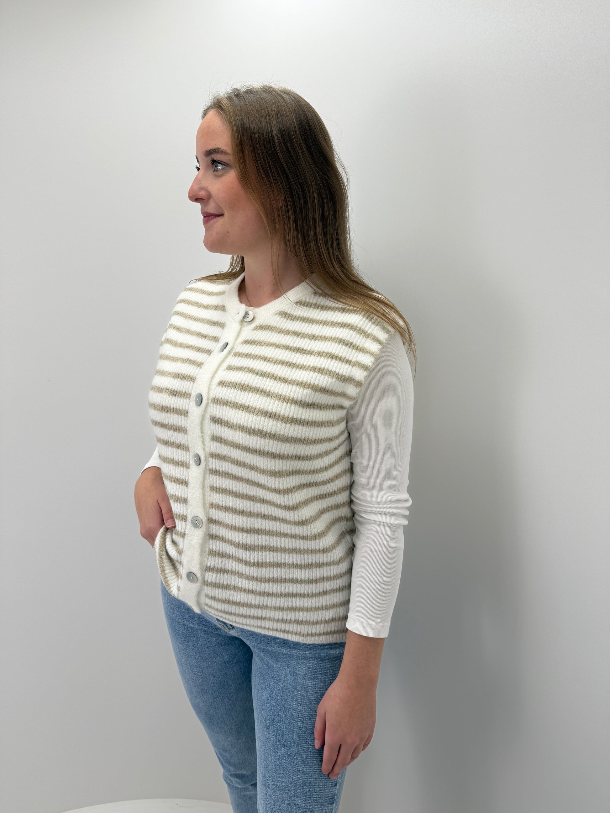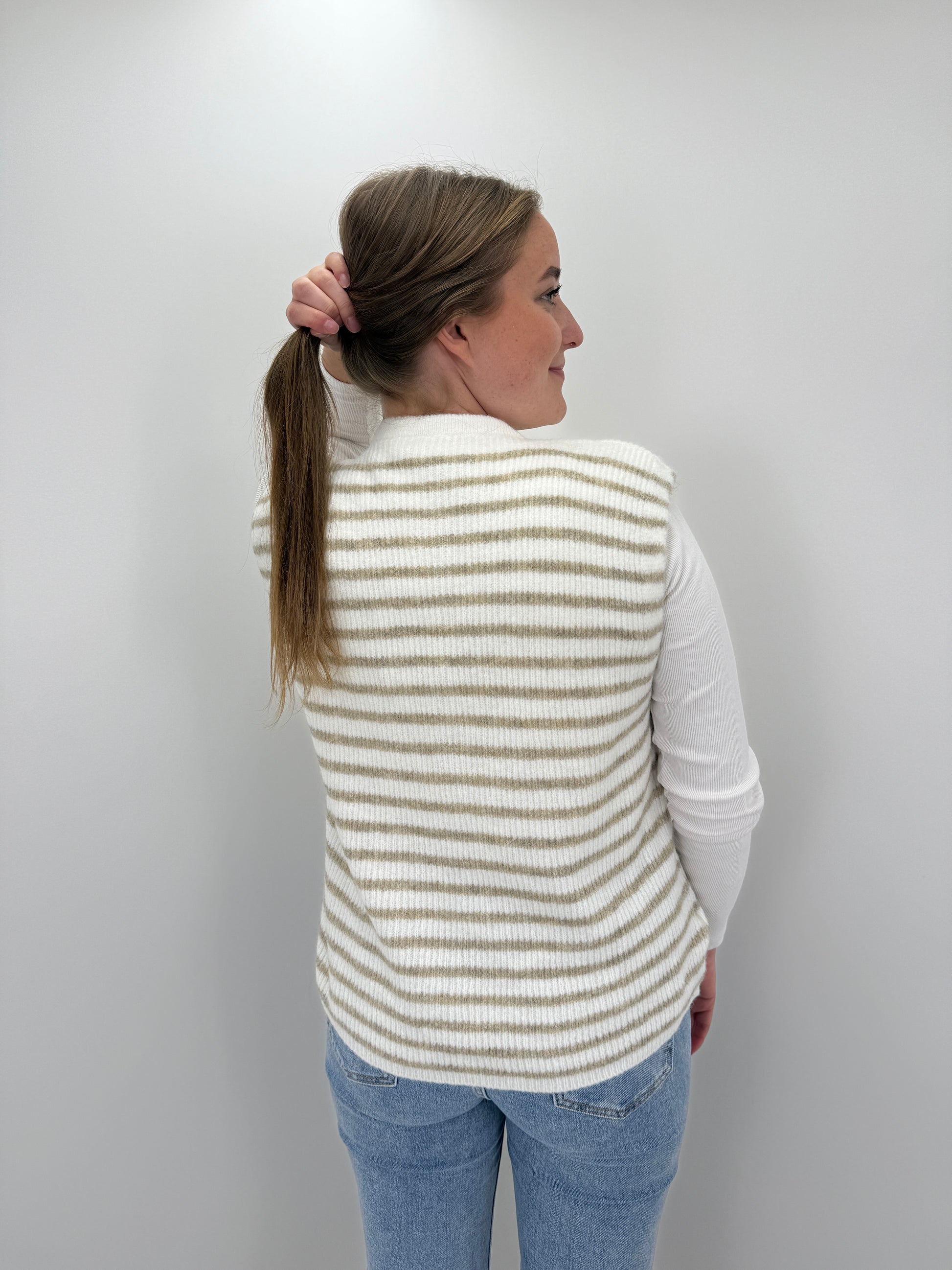 Pullunder Stripes- beige/weiß